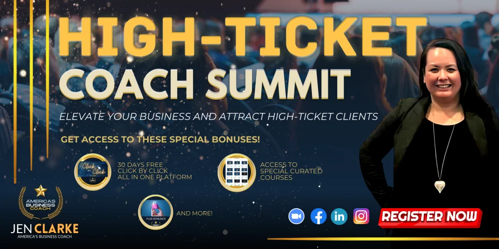 Book Your Seat for this EPIC Virtual Event Experience where You will Receive a Business Plan from America’s Business Coach Jen M. Clarke for YOUR MOST SUCCESSFUL YEAR EVER IN 2024!